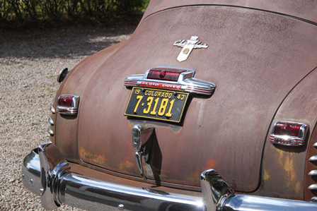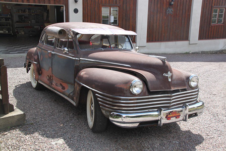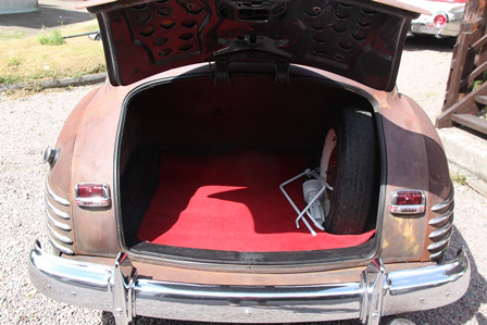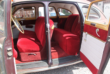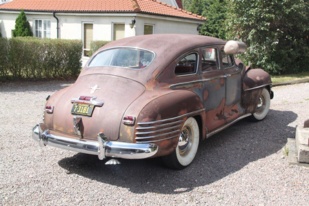 6 cyl, halvautomat. Stått sen 70-talet, intagen 2003. Ny röd inredning med vitt innertak, trä-ådrade paneler, nya gummilister, nytt glas, servad maskinellt, renoverade bromsar, nya white wall däck på renoverade originalfälgar. En ovanlig modell. En av de sista tillverkade 42:orna, 5 dagar efter Pearl Harbor.