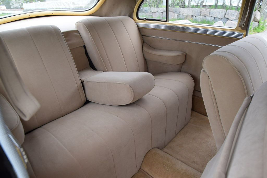 Rak 6:a, halvautomat växellåda, helrenoverad motor som bara rullat 100 mil, inredningen är proffsigt omklädd i originalutförande, lack och krom i toppskick. En lyxig komfortvagn där man kan sjunka ner i baksätet och njuta. En körklar bil i utställningsskick.