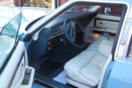 460 V8, automat, ljusblå med vitt vinyltak, vit skinninredning i nyskick, mycket fin enägarbil, fullutrustad. Måste ses!
