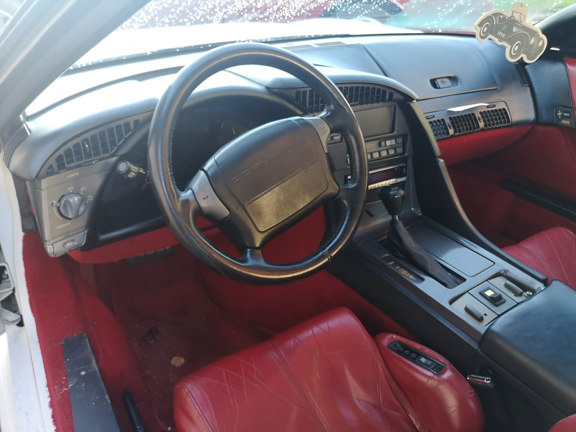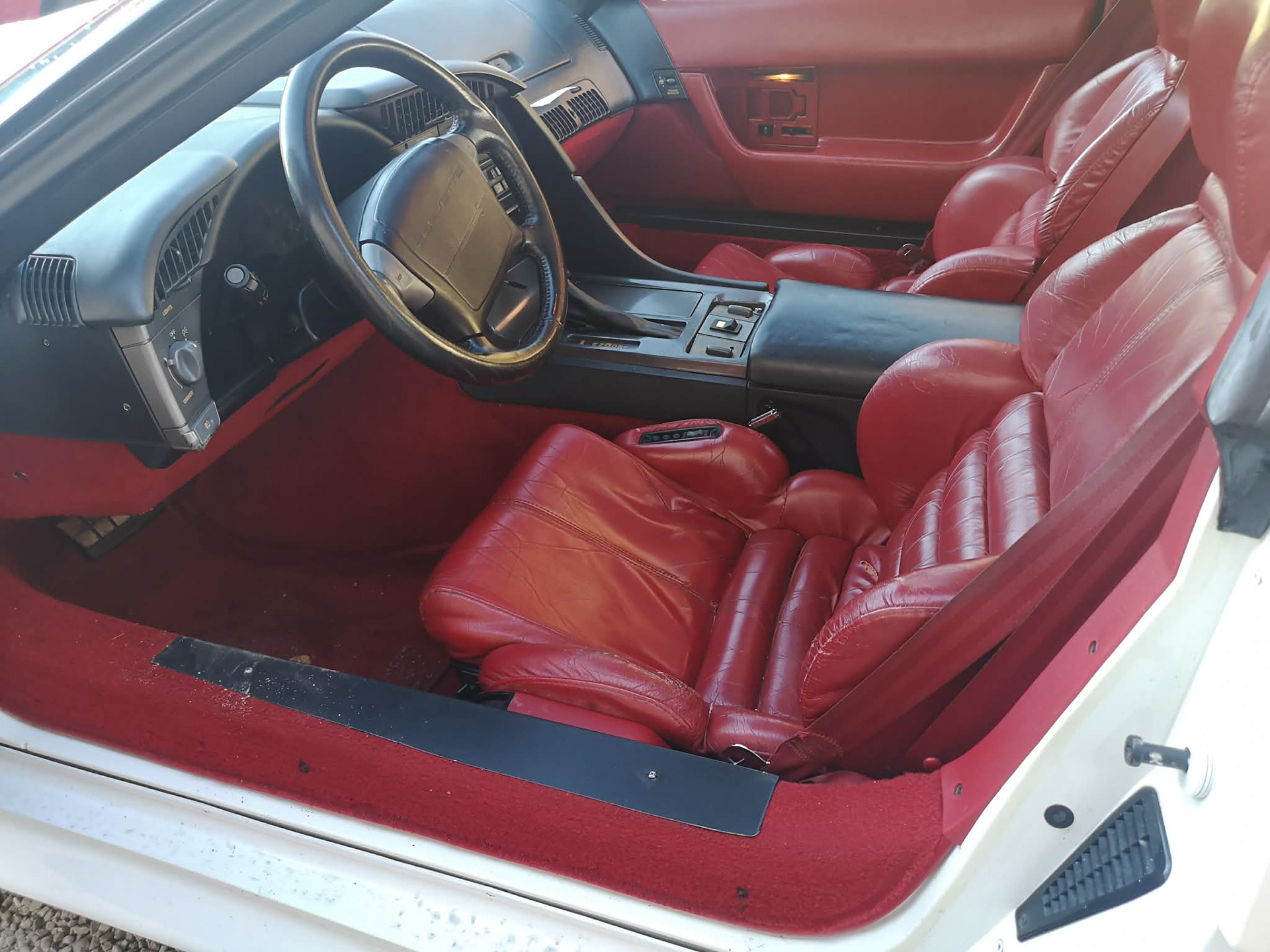 V8, automat, vit med röd skinninredning i fint skick, finns en liten reva i skinnet på förarsätet, fullutrustad, targatak. Besiktigad och klar, skattebefriad.